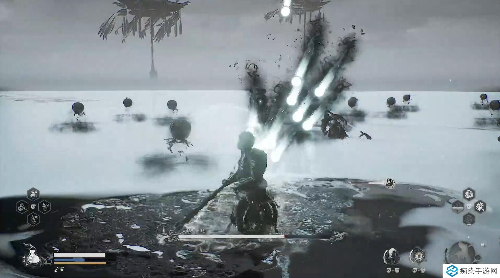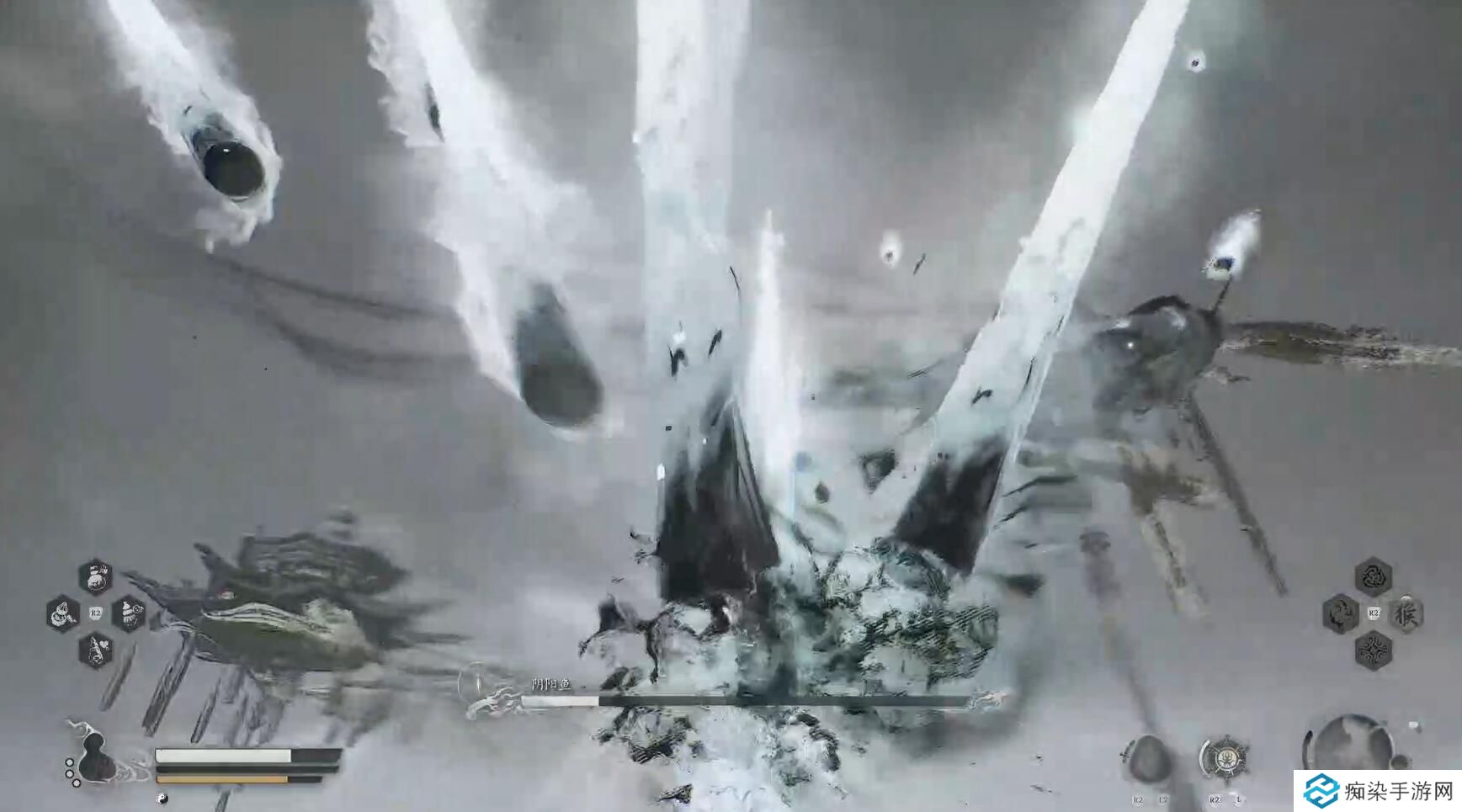 非常白给的招式,最大的问题就是球的持续射击时间比较长,我们需要把握好时机去释放棍花,早一会或者耐力条不够长,都会导致我们棍花早早结束,被射成筛子