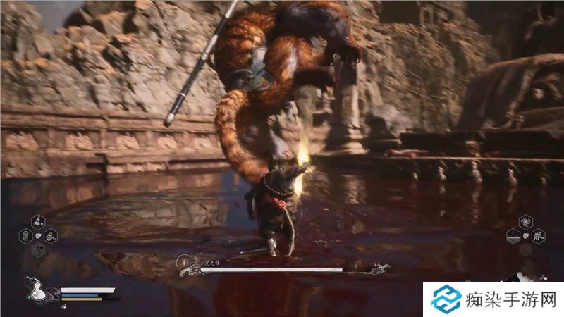 应对解析:“铜头铁臂”技能使用时虎先锋免疫所有伤害(体现在虎先锋全身变成沙子的形态),包括定身术等法术技能,这时候打到它会弹刀,用伤害高的棍式或“幽魂”的头槌也能击破(小编测试过);注意虎先锋此时攻击欲望相较于一阶段攻击频率会变高,且会使用“金蝉脱壳”之术,此时切莫贪刀。