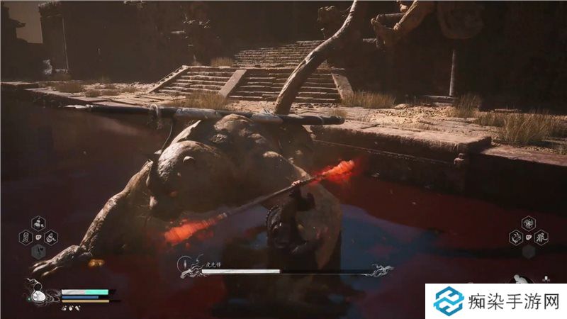 攻击建议在虎先锋使用坠击后进行,可以打一套完整的轻攻击伤害,轻攻击终结技能打出硬直。可以考虑使用立棍式,立在二阶段棍子上可以规避掉一些虎先锋的普攻,并能一棒子打出硬直。