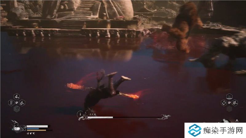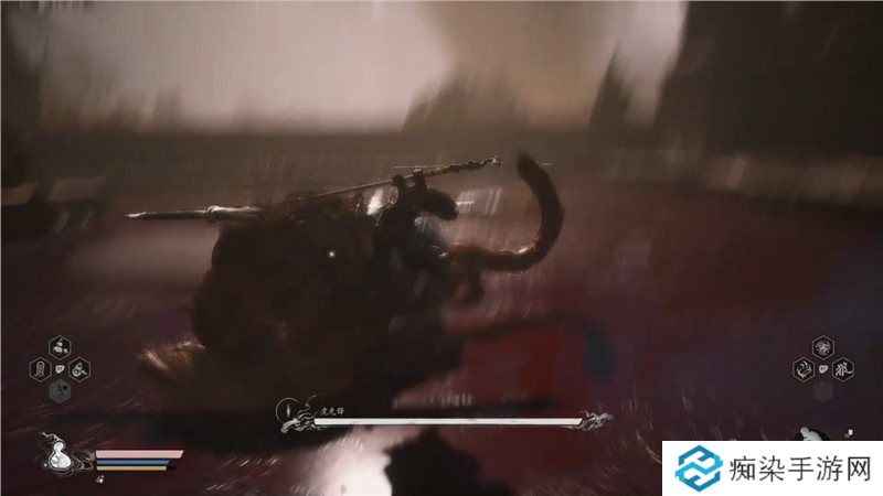 注意虎先锋如果离你位置较远起手就会跳起来快速靠近你然后进行下坠攻击,这一招看准时机靠翻滚就可以躲避,虎先锋在接近你时最喜欢用的一招,在它猛扑后可以对其进行输出,轻攻击最后一棍可以打出硬直。