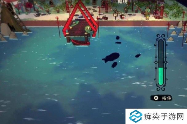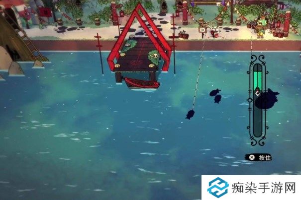 鱼上钩了之后就可以一直点按住拉鱼上岸。