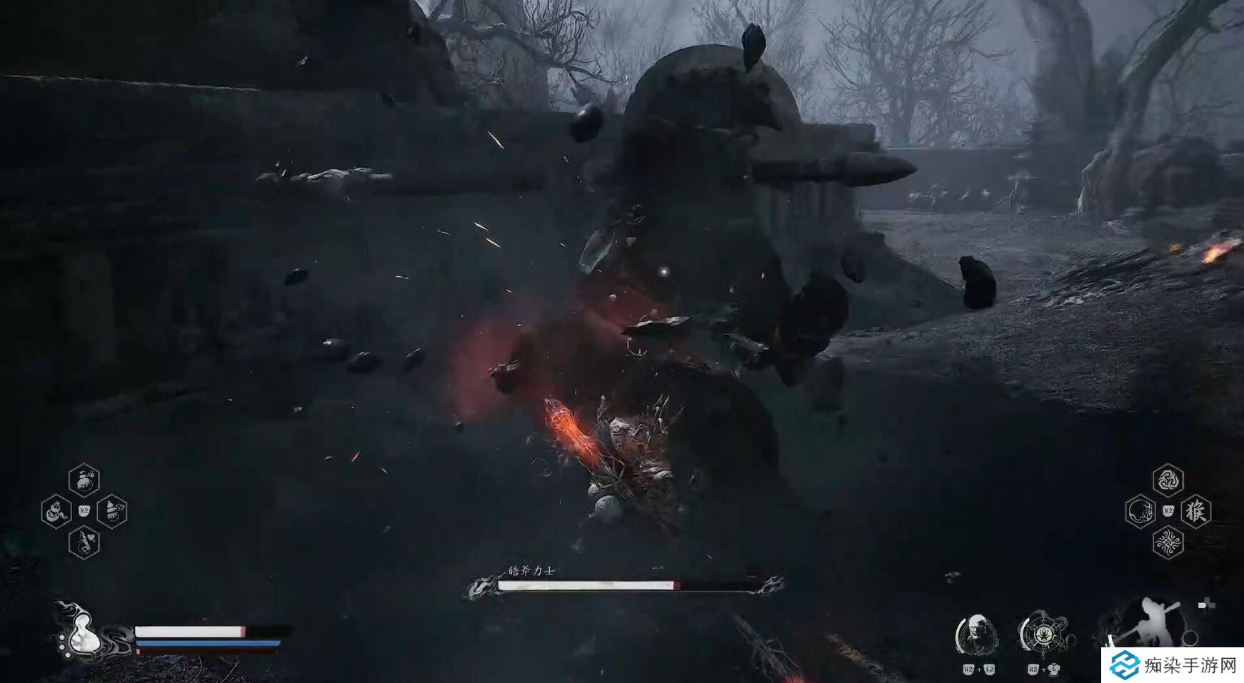 黑神话悟空皓斧力士怎么打?这里的褐铁战车的投石攻击不分敌我,打起来比较容易,下面为大家带来黑神话悟空皓斧力士打法攻略。