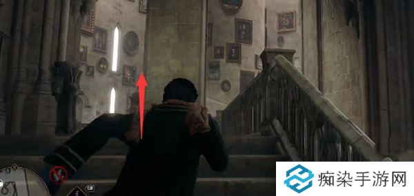 2、来到楼梯下方,朝着上面移动。