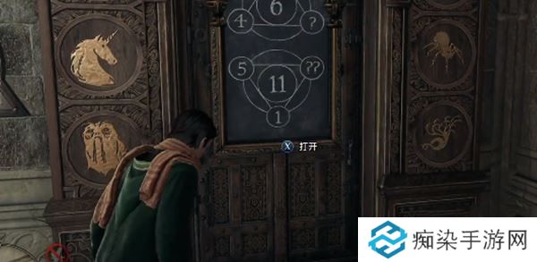 霍格沃茨之遗算数占卜门其实非常简单,门上的图案从左到右依次对应0~9,中间的数字代表三角三个数的和,做个简单的加减法即可通过