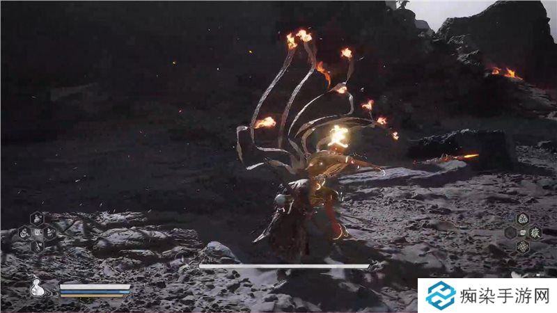 简介:这个招式释放时红孩儿血量必定是一半,所以属于转阶段的必放招式。会先进入无敌状态,缓慢**。随后在身边生成总共18道分身来追击我们。