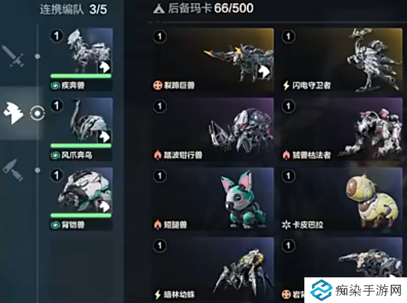想要管理玛卡时,首先点击家园中枢,在这里有一个“玛卡管理”,点开就能进入到玛卡管理界面中,查看每一只玛卡的信息和状态,玛卡的种类非常丰富,大家可以通过点击界面上方的“筛选”,直接筛选出我们现在需要的。