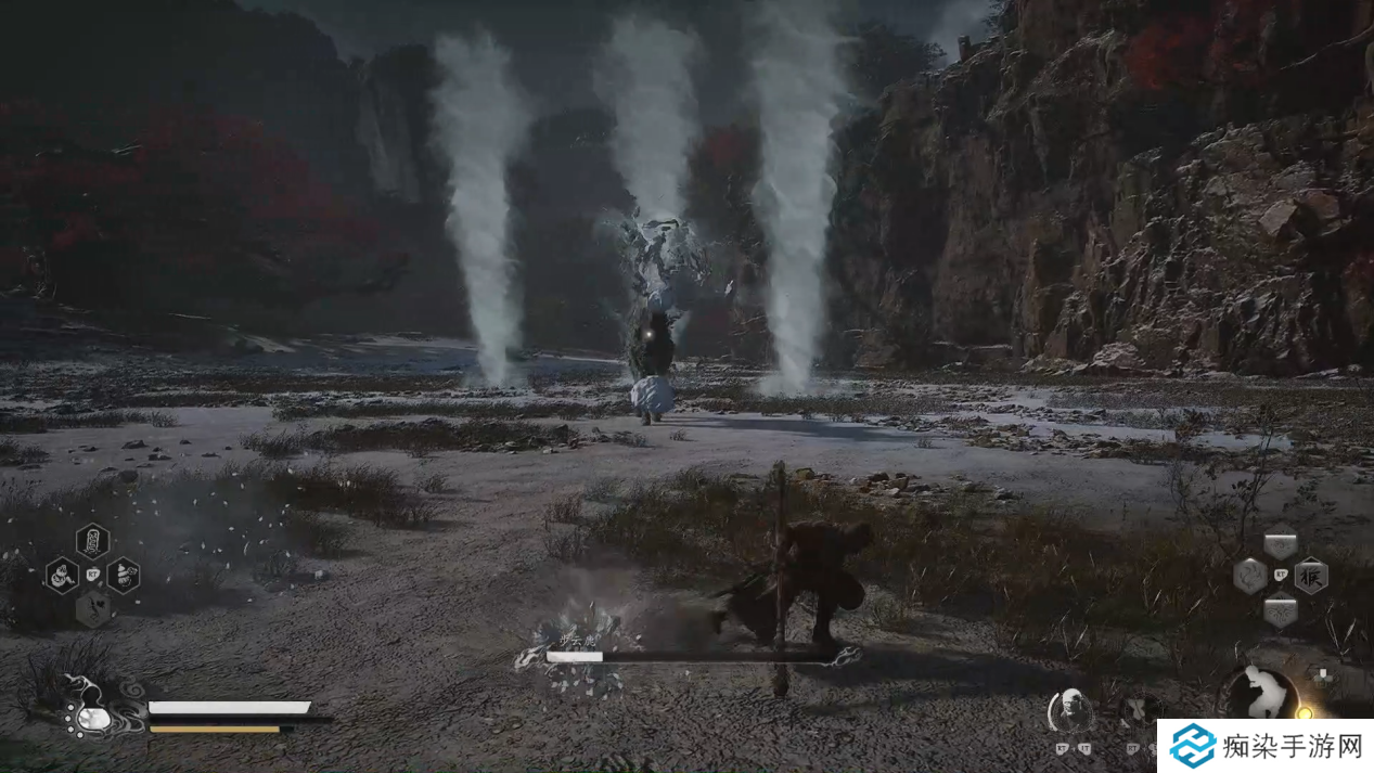 步云鹿长啸一声,召唤出多股龙卷风,靠近龙卷风会受到持续伤害,所以此时我们要保持移动,勾引龙卷风远离步云鹿再进行攻击。