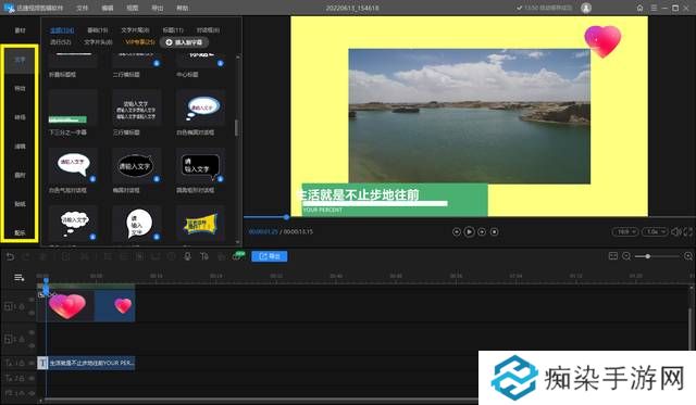 当然,我们也能在左侧的功能栏里给视频添加滤镜、文字、以及贴纸等特效,美化视频内容。