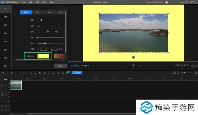 导入之后点击右上方的视频内容,鼠标按住拖动视频边缘的虚线可以对视频画面进行裁剪,松开鼠标裁剪就完成了,我们还能设置视频的背景颜色。