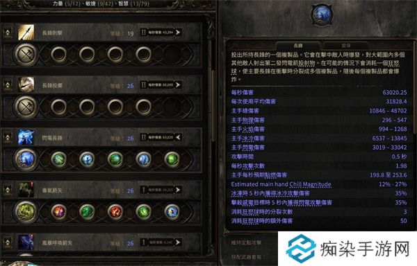 该电矛构筑的原始面板输出为6万,经过一系列增伤与触发机制叠加后,实际打死怪物时的面板可达到近17万。构筑偏向于单发高伤类型,适合中等偏快的刷图节奏,但对站位与施法时机有一定要求。