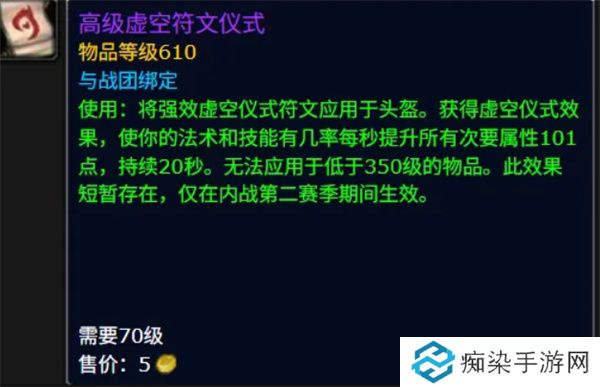 虚空仪式是六种新附魔中唯一直接提供属性的选项,对所有职业和天赋均有普适性收益。
