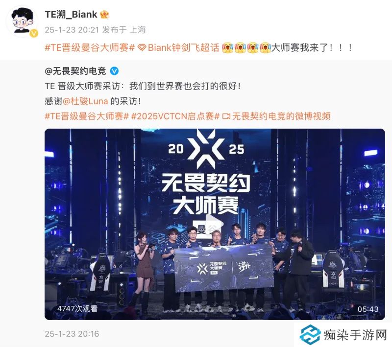 晋级大师赛后TE众选手发文:大师赛我来了!