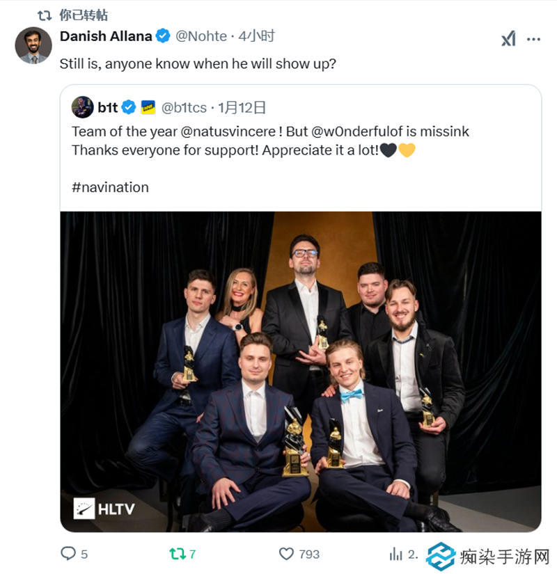 赛后Nohte(HLTV编辑)挖坟b1t在今年年初的一条动态。当时NAVI在HLTV年度盛典上被评为2024年最佳战队时,b1t表示:“NAVI是年度最佳战队,但w0nderful缺席了。”