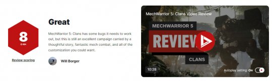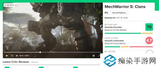 《机甲战士5:部族》IGN 8分,Metacritic PC版媒体评分79分,用户评分4.7分,Steam评价“多半好评”。