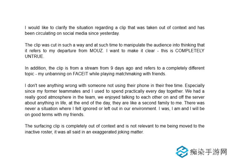 MOUZ战队这件事。我想明确说明,这完全不实。