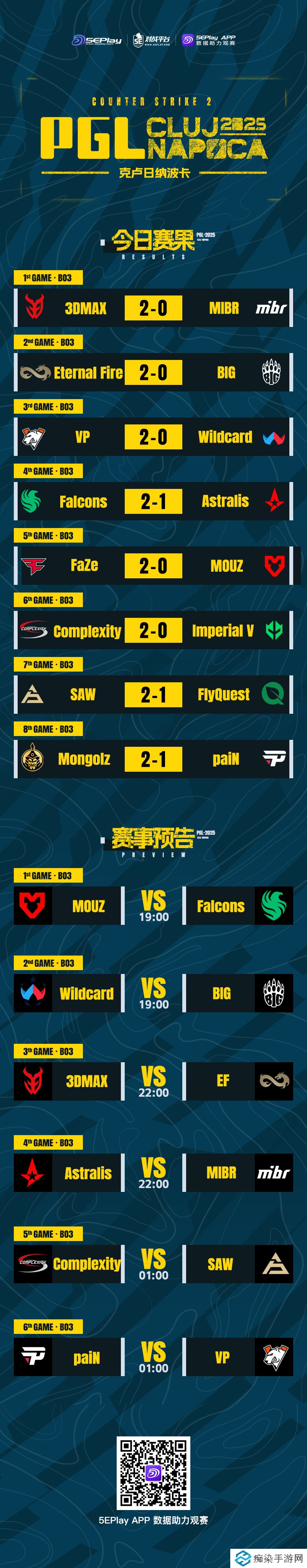 MIBR展开生死战。以下为今日赛果、明日预告一览: