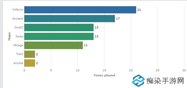 本次PGL 克卢日-纳波卡站小组赛中最受欢迎的地图是Inferno,出场了21次,Ancient 17次位列第二。出场次数最少的是Train和Anubis。