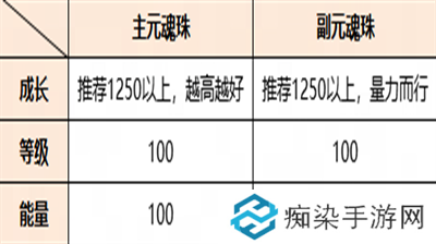 培养1个4星元魂珠,成长在1250左右,等级和能量均培养至100。