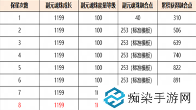 4)通过4星和5星阶段的保星,将该副元魂珠融合点培养至目标值。