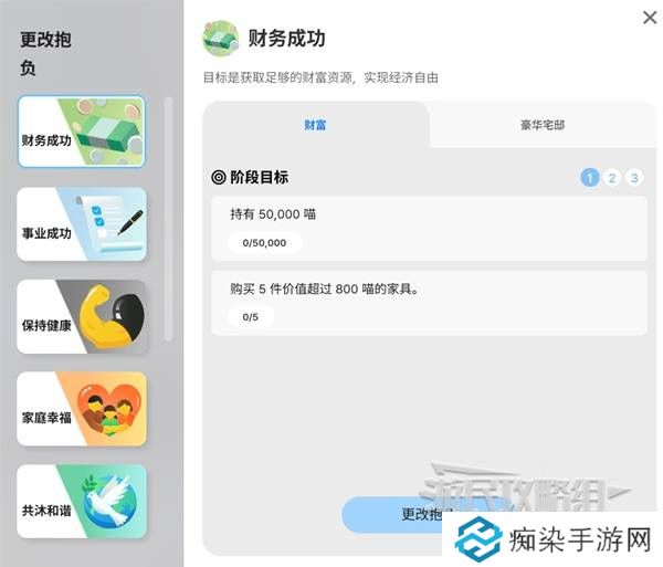 如选择【财务成功】抱负就会有三个不通过阶段的目标需要达成。
