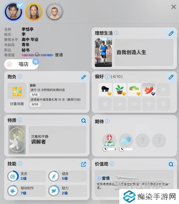 价值观:价值观在小人的青春期逐渐形成,主要受到特质影响,而后期的各种选择与经历也会导致价值观发生改变,不同价值观的小人会有不同的互动选项。