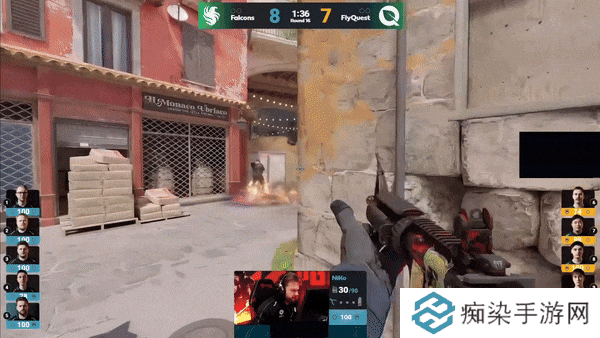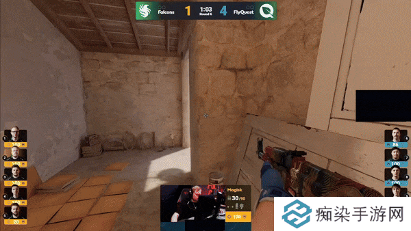 FlyQuest先做进攻方。手枪局,Falcons爆弹打B,CT做到二换二,Magisk关键时刻双杀拿下手枪局。