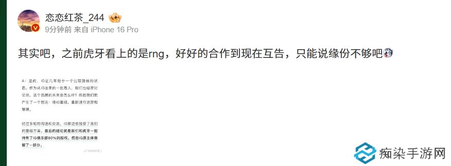 恋恋红茶:虎牙投资iG之前看上的是RNG 从合作到现在互相对簿公堂