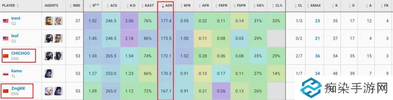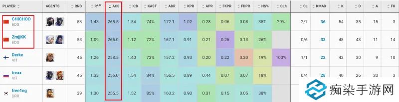 ACS平均战斗评分:CHICHOO、ZmjjKK位列前二