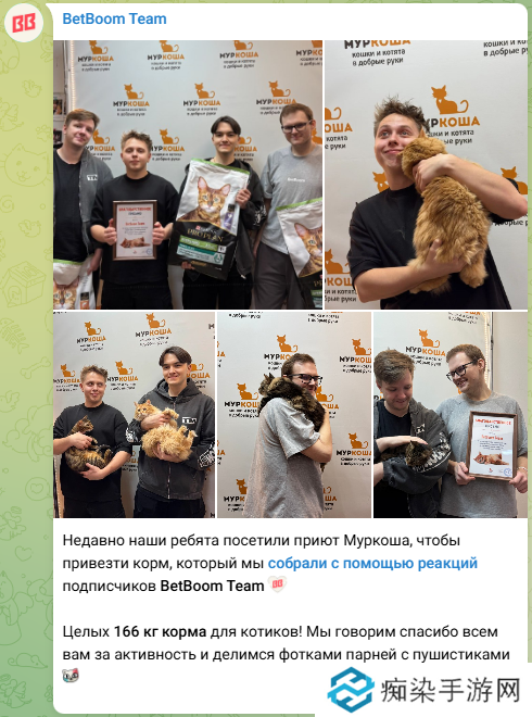 “最近,我们的队员们访问了穆尔科沙收容所,为小猫们带去了在BB粉丝们的帮助下募集到的166公斤猫粮!我们对大家的爱心活动表示感谢,并在此分享一些队员们与毛茸茸的猫咪们的合影。”
