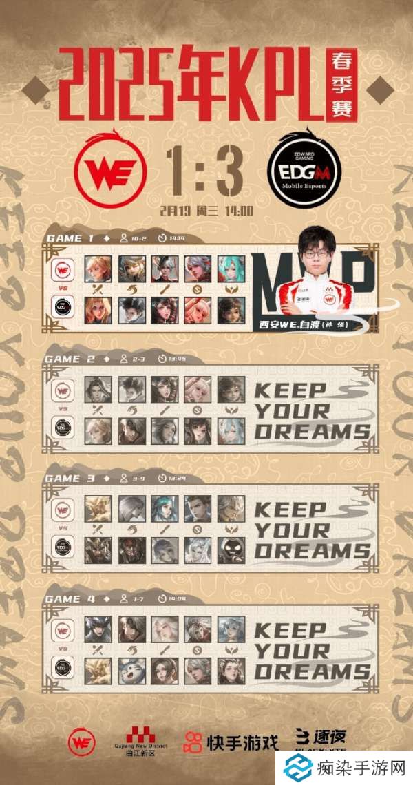 在刚刚结束的2025KPL春季赛常规赛西安WE vs 上海EDG.M的比赛中,我们以1:3的比分遗憾落败。