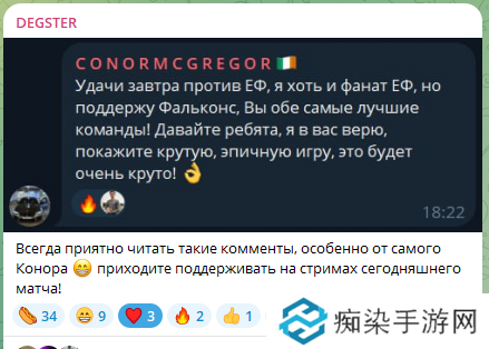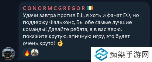 Falcons战队选手degster在个人频道晒出了前UFC羽量级、轻量级冠军康纳·麦格雷戈的留言:
