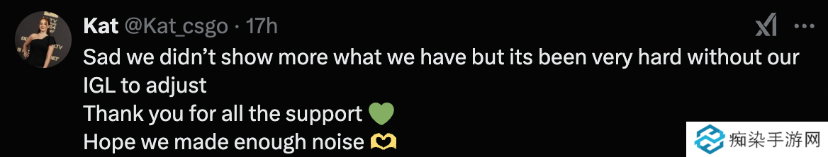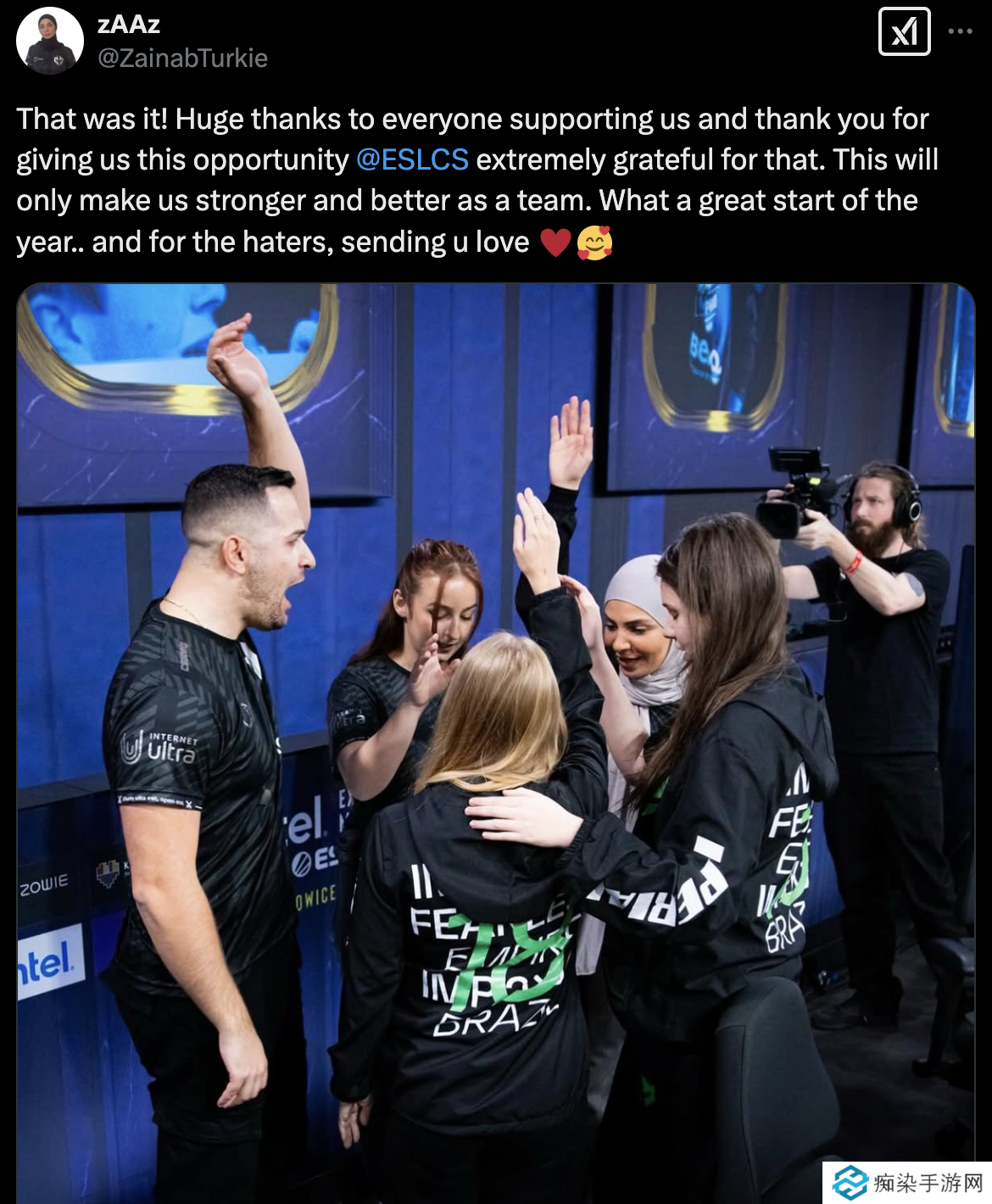 Zainab Turkie | zAAz:“止步于此!非常感谢所有支持我们的人,感谢@ESL给了我们这次机会,对此我们感激不尽。这次经历只会让我们这支队伍变得更强、更棒。今年的开局真是太棒了。”