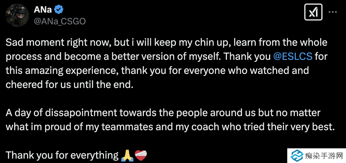 Ana Dumbravă | ANa:“现在是悲伤的时刻,但我会振作起来,从整个过程中吸取教训,成为更好的自己。感谢@ESL给我们带来了这次难忘的经历,感谢每一位观看比赛并为我们欢呼到最后的观众。今天是失望的一天,但无论如何,我都为我的队友们和教练感到骄傲,她们已经尽了最大努力。”