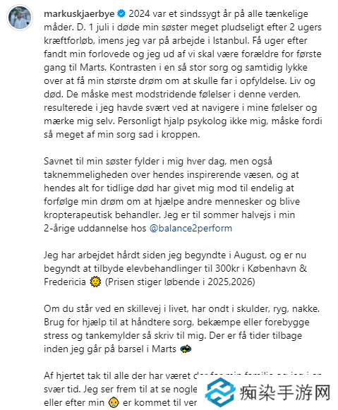 Kjaerbye宣布孩子即将出生 发表长文感叹并分享人生近况