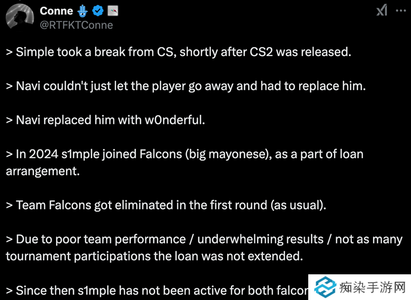 > 从那之后,s1mple就没有在Falcons和NAVI战队阵容中活跃了。”