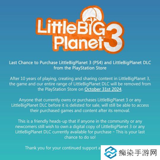 《小小大星球3》宣布PS4版即将永久下架 已购买的玩家不受影响