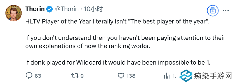 Thorin分享了自己对于HLTV Top1评选的看法。