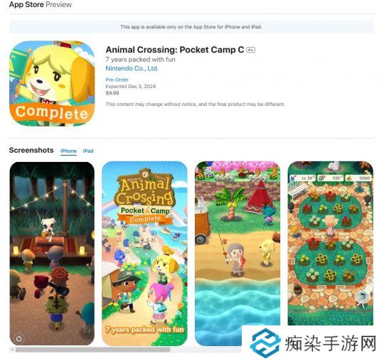 近日任天堂正式公布了买断制《动物森友会:口袋露营广场集合版》的上线时间,将于2024年12月3日登录iOS和安卓平台,目前已在双端的商城页面上线,并提供事前登录和预定,目前预定价格为9.99美元(iOS端,约合人民币71.3元)。
