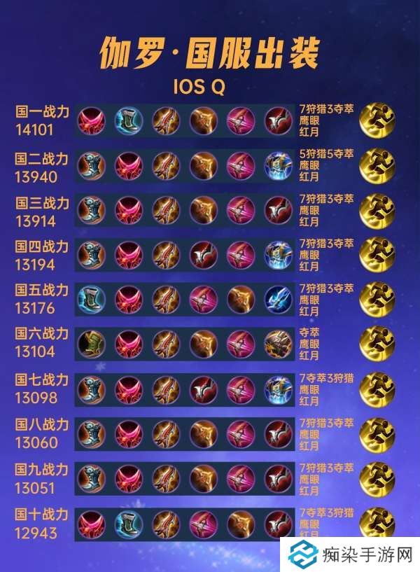 这篇文章我们来看一下40位国服伽罗的出装铭文汇总。