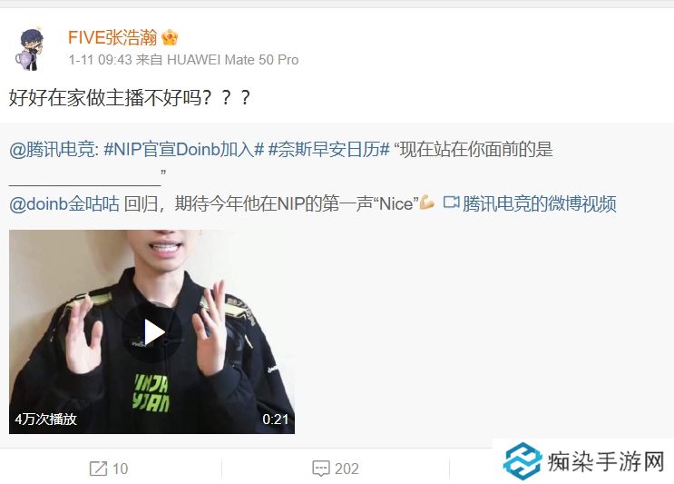 相关阅读:黄旭东:张浩瀚做了个Doinb好好做主播牌子,打算赢了就举的
