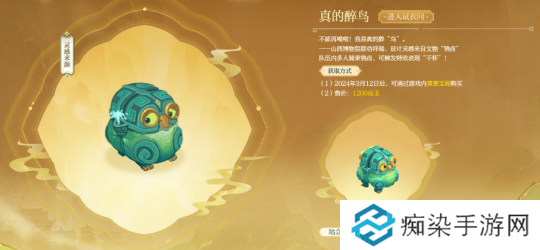 在“筑梦山西”联动中,《梦幻西游》电脑版以山西博物院馆藏文物“鸮卣”为原型打造了联动祥瑞“真的醉鸟”,并为其打造了专属彩蛋。“真的醉鸟”是国宝,因此它成了梦幻西游第一只“横行”祥瑞,因其是商代青铜酒器,当多只“真的醉鸟”在组队状态下接近,就能触发特效“干杯”!