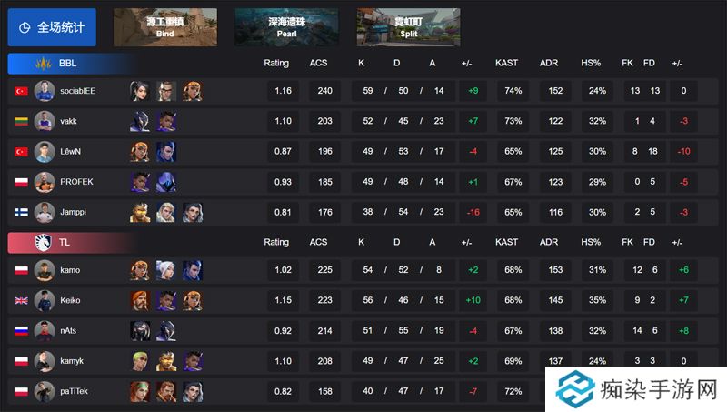 图**BL选择深海明珠,vakk与sociablEE联手爆发帮助队伍半场攻下9分,随后稳扎稳打以13-9扳回一城。