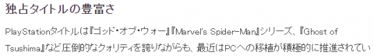 ·独占游戏的丰富程度。