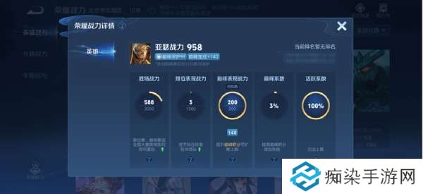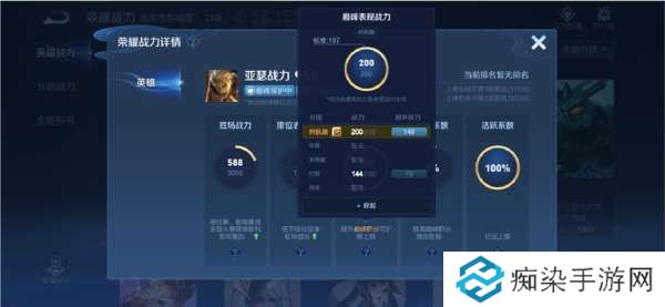 英雄战力,由胜场战力,排位表现战力,巅峰表现战力,巅峰系数,活跃系数等指标共同构成。