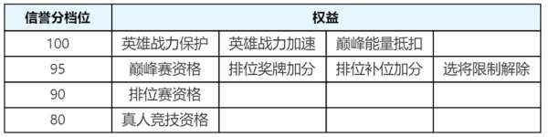 英雄战力保护:当信誉分<100时,排位/巅峰表现战力达到上限后,不提供英雄战力保护。