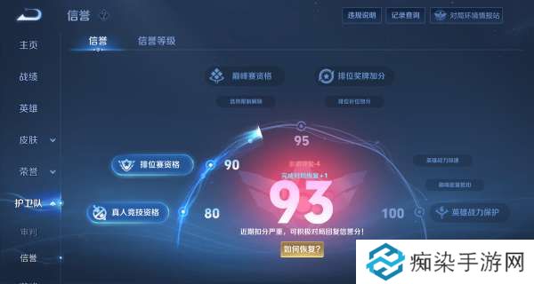 巅峰赛资格:当信誉分<95时,无法参与巅峰赛模式。