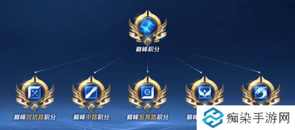 巅峰榜,也由原来的一个榜单,拆分为五条分路各自一个榜单,每个榜单以各自分路的巅峰积分进行排行,每周/赛季对榜单进行结算,并发放奖励和荣誉。