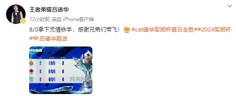 虎扑11月22日讯 军团杯带队零封无情铁手,吕德华发文:感谢兄弟们带飞!