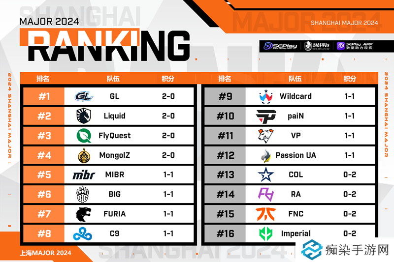 上海Major开幕阶段首日赛果一览