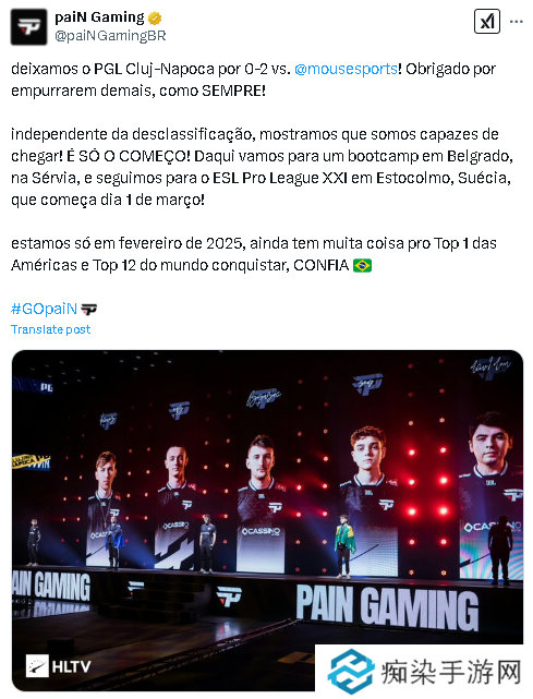 paiN官推:我们在PGL 克卢日-纳卡波站以0-2不敌MOUZ,遗憾出局。你们一如既往地带给我们强大的挑战!
